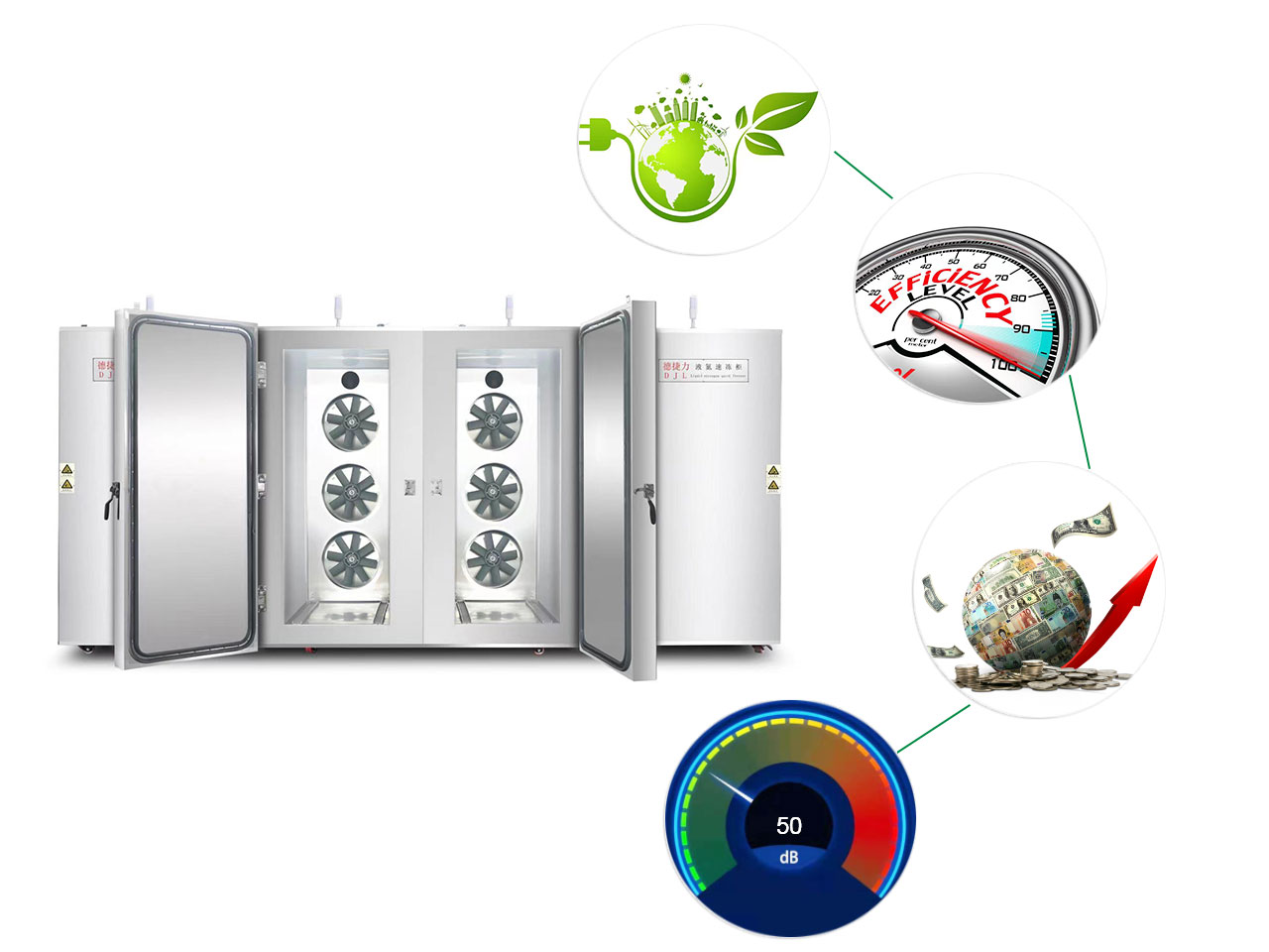 Dejieli's quick-freezing equipment utilizes ultra-low-temperature anti-icing fans. This design not only effectively prevents vibration and noise caused by fan blade imbalance due to frost buildup but also ensures smooth and efficient blade operation. This achieves energy-saving and environmentally friendly objectives.