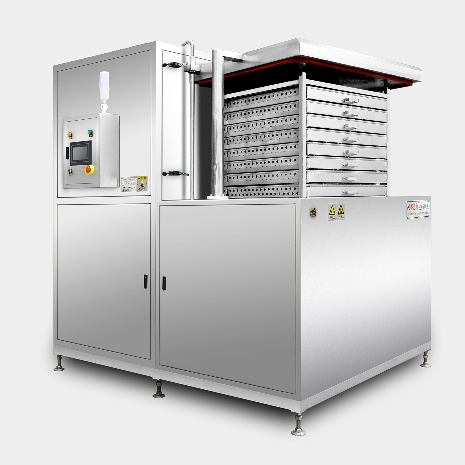 Highly efficient and stable CIP cleaning system featuring a graphical user interface display. Automatically switches between process parameters and adjusts cleaning duration, temperature, and other settings. All operations are fully recorded to facilitate GMP certification. The tunnel-type quick-freezer employs a lift-up design for easy daily maintenance and inspection of product residues. This effectively prevents potential cross-contamination between products, ensuring strict adherence to food safety standards.